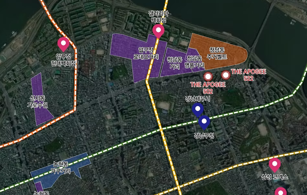강남에서도 대표 부촌으로 손꼽히는 청담동의 모든 것을 걸어서 누리는 최고의 입지